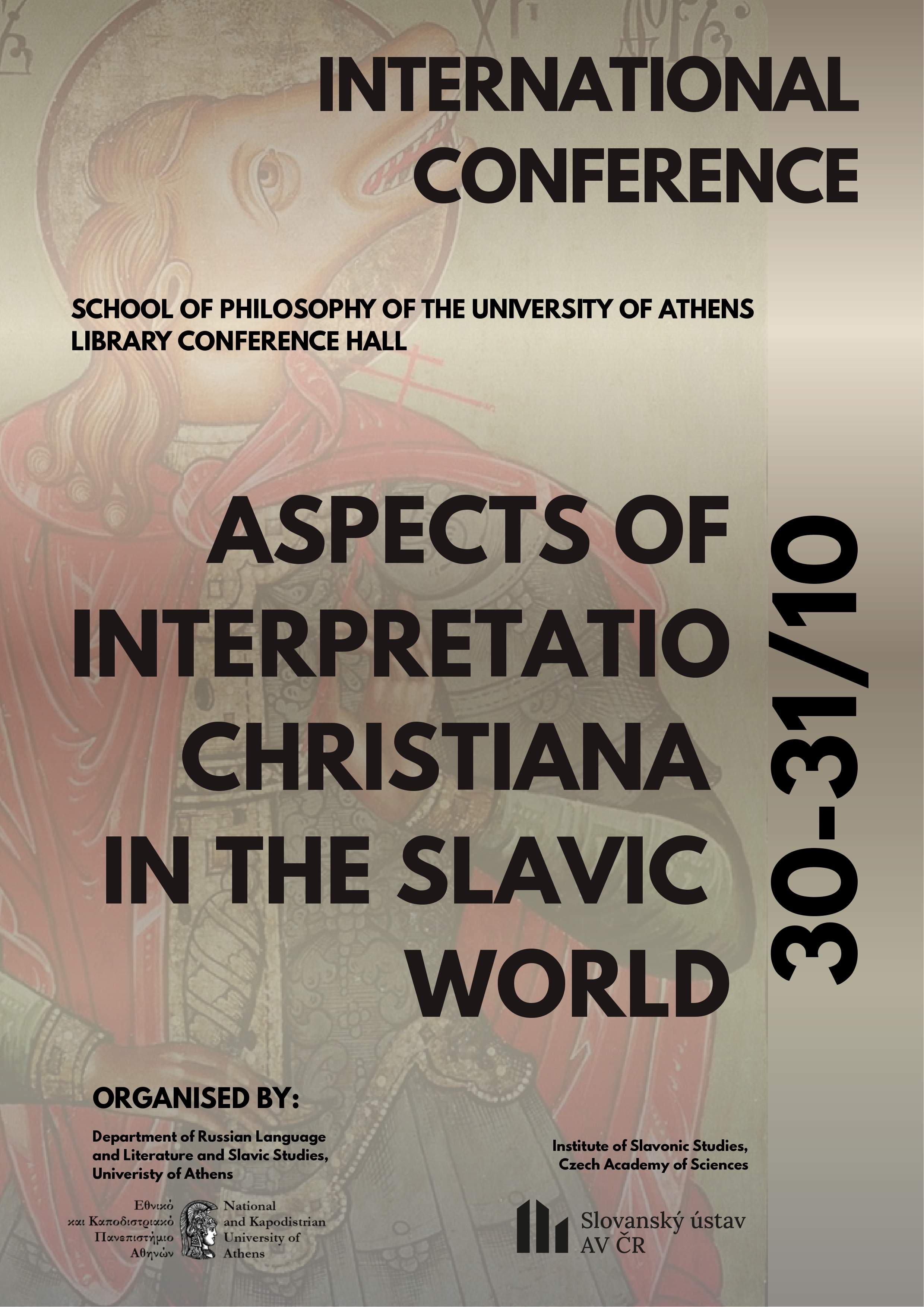 Το Τμήμα Ρωσικής Γλώσσας και Φιλολογίας και Σλαβικών Σπουδών του ΕΚΠΑ και το Ινστιτούτο Σλαβικών Σπουδών,της τσεχικής Ακαδημίας Επιστημών (Institute of Slavonic Studies, Czech Academy of Sciences) συνδιοργανώνουν στις 30-31.10.2025 Διεθνές Συνέδριο με τίτλο:  ASPECTS OF INTERPRETATIO  CHRISTIANA IN THE SLAVIC WORLD στο αμφιθέατρο της Βιβλιοθήκης της Φιλοσοφικής Σχολής.